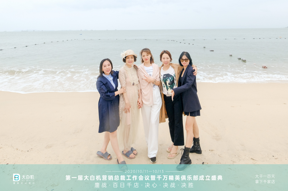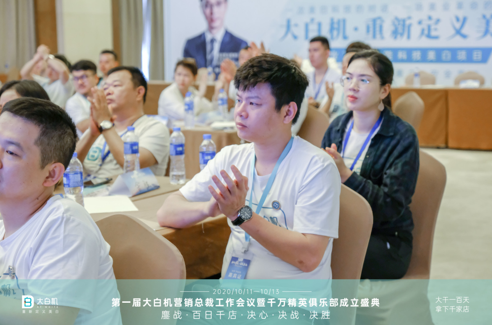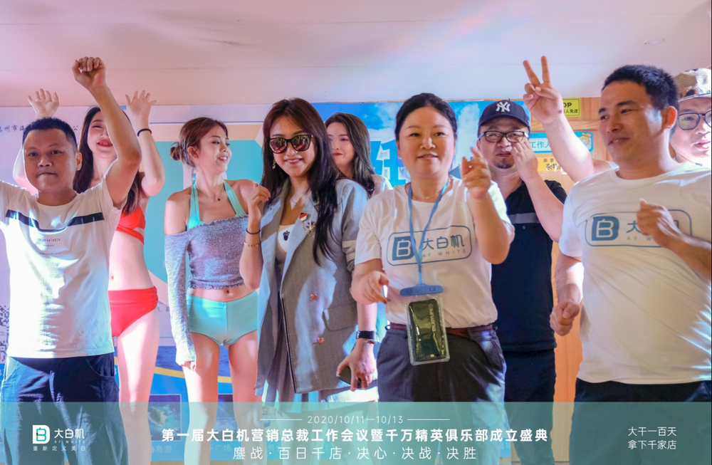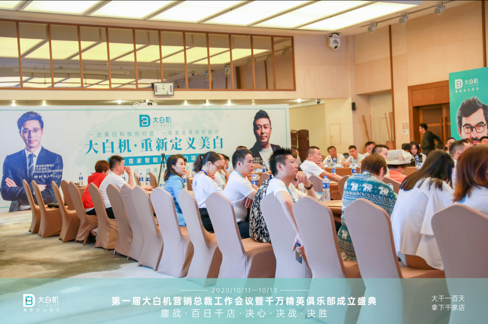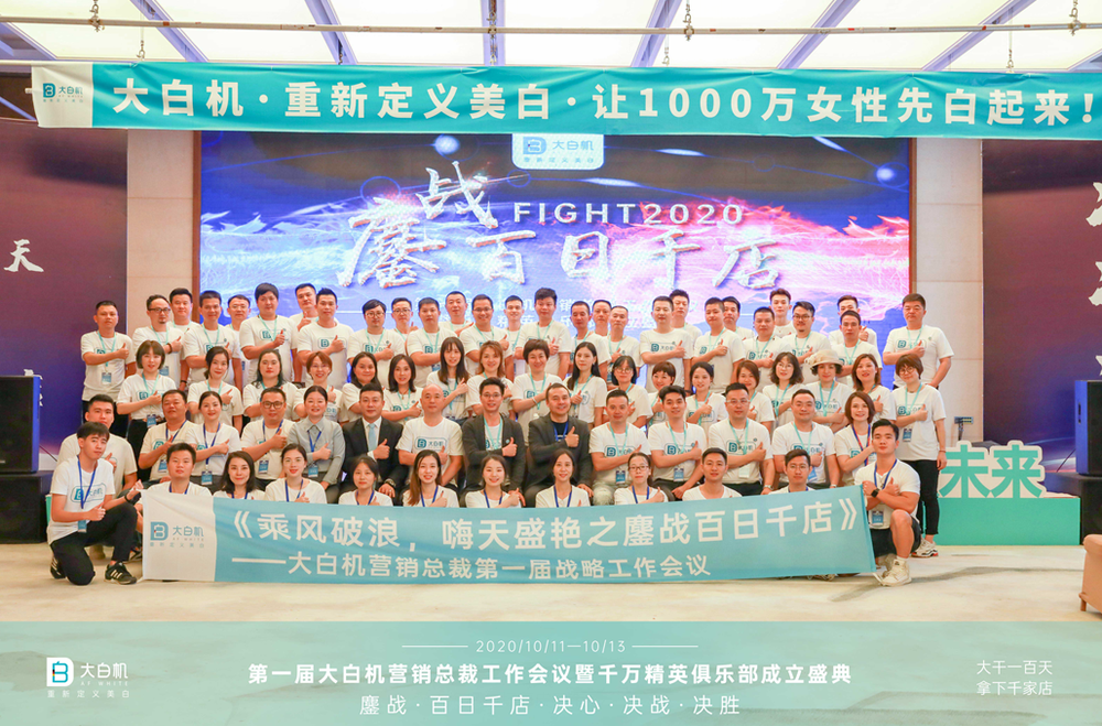 2020年10月11日至13日,德国大白机董事长及创始人邓利平先生,中国智能美肤专委会主席陈光先生、德国大白机中国区CEO Homen先生、德国大白机销售总监陈斌平女士及大白机业务精英团队,与来自全国的日化渠道,美容院渠道,美甲美睫渠道,医美渠道的核心合作伙伴一行90余人齐聚在惠州巽寮湾口,共同出席“2020乘风破浪,嗨天盛艳,鏖战百日千店”营销总裁工作会议,分享经验、展现荣誉、坚定信念、共赢科技美白大未来!