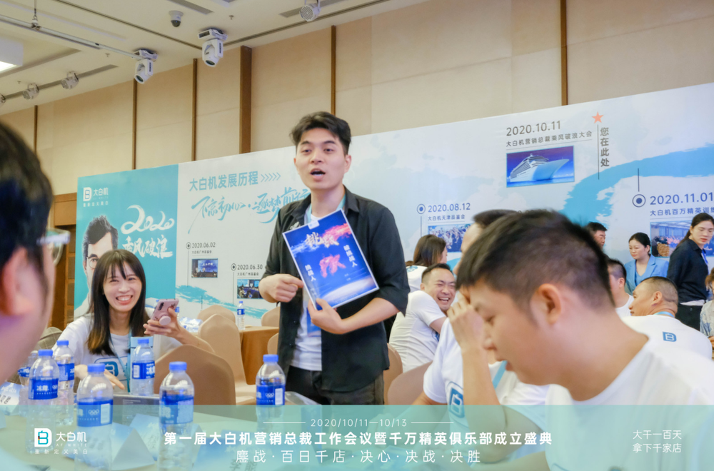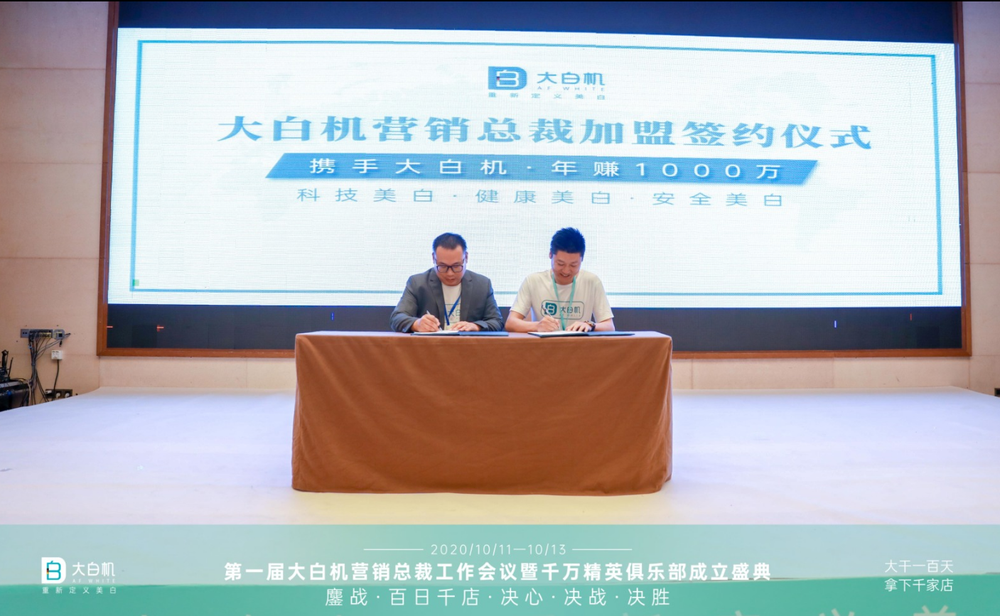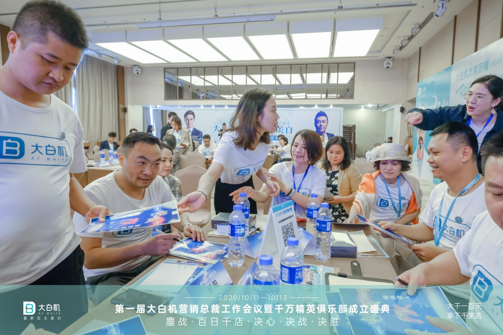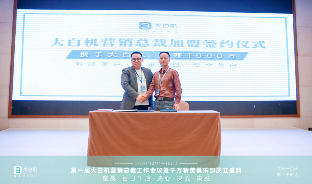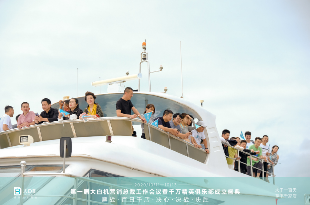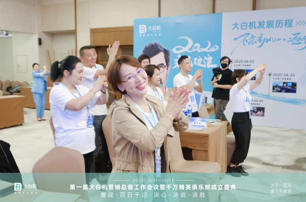 2020年10月11日至13日,德国大白机董事长及创始人邓利平先生,中国智能美肤专委会主席陈光先生、德国大白机中国区CEO Homen先生、德国大白机销售总监陈斌平女士及大白机业务精英团队,与来自全国的日化渠道,美容院渠道,美甲美睫渠道,医美渠道的核心合作伙伴一行90余人齐聚在惠州巽寮湾口,共同出席“2020乘风破浪,嗨天盛艳,鏖战百日千店”营销总裁工作会议,分享经验、展现荣誉、坚定信念、共赢科技美白大未来!