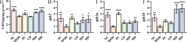 促进合成:上调5-HT合成限速酶相关基因tph1a、tph1b、tph2的表达,加速5-HT生成;